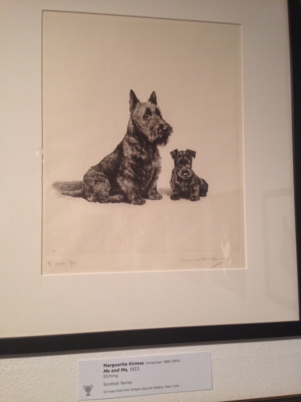 We attended this wonderful show at the Morris Museum celebrating dogs in art (19th c to present) with a focus on British and American artists. This exhibition examines works of art in which the dog is the main subject: the exhibit shows the performance of hounds and sporting dogs working in the field. The show features both new and old pure bred pet portraits in their domestic environments.